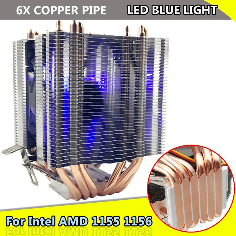 Check out our sale items 6X Pipe 4 Wire Single Fan With Blue Light Cpu Fan Cpu Heatsink For Intel 775/1150/1155/1156/1366 Am and enjoy free all right Shipping on
