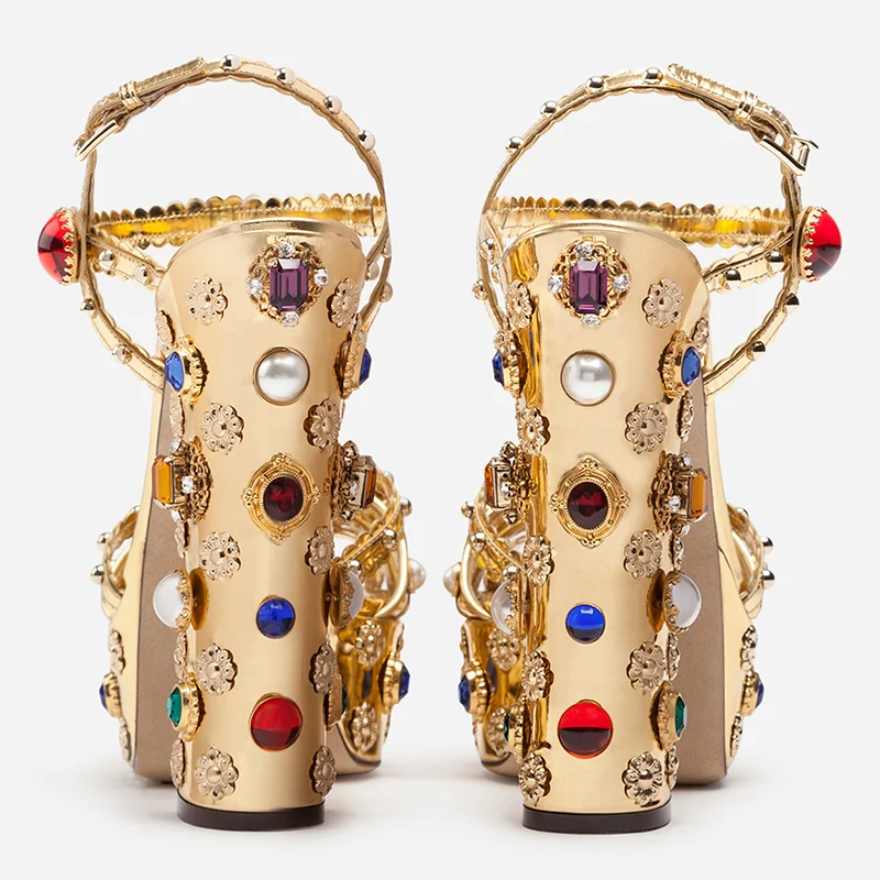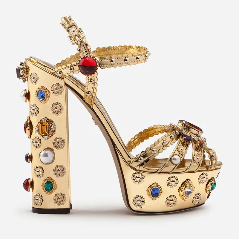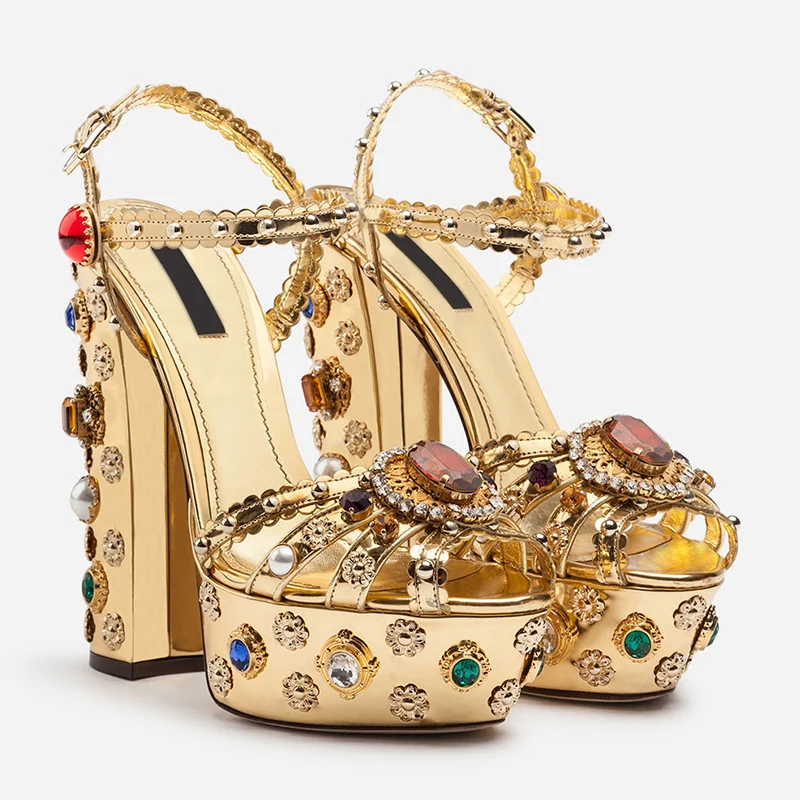 Shop our Womens Platform Peep Toe Gold Diamond Ankle Buckle Rhinestones Crystal Block High Heel Pumps Slingb with price US $149.99 , And get 15%OFF