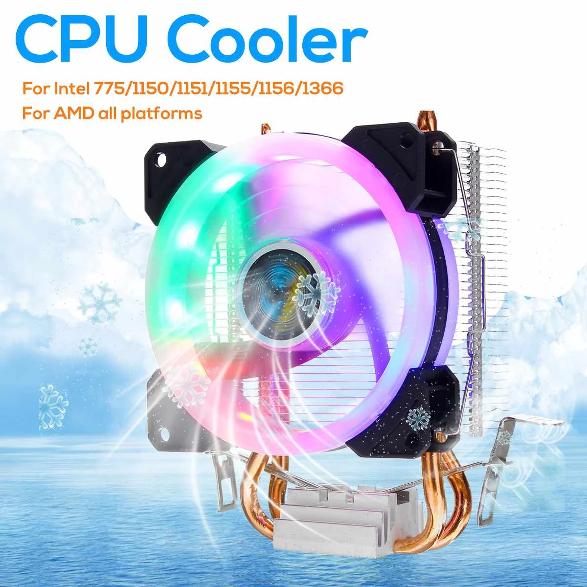 Check out our sale items Led Pure Copper CPU Cooler 2 Heatpipe 4Pin 5 Light RGB Cooling Fan 9cm Cooler Fan For Intel 775/115 and enjoy clear usual Shipping on
